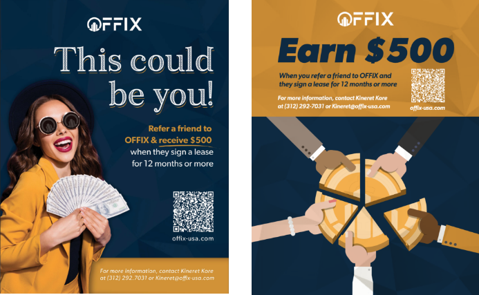 The sleek fonts and bright imagery of the OFFIX/MyStudio brand afford us flexibility in executing multi-channel marketing strategies. The vibrant colors pop when used in a social media stream, while the simple black logo inspired a traffic-stopping billboard. OFFIX continues to revolutionize coworking.